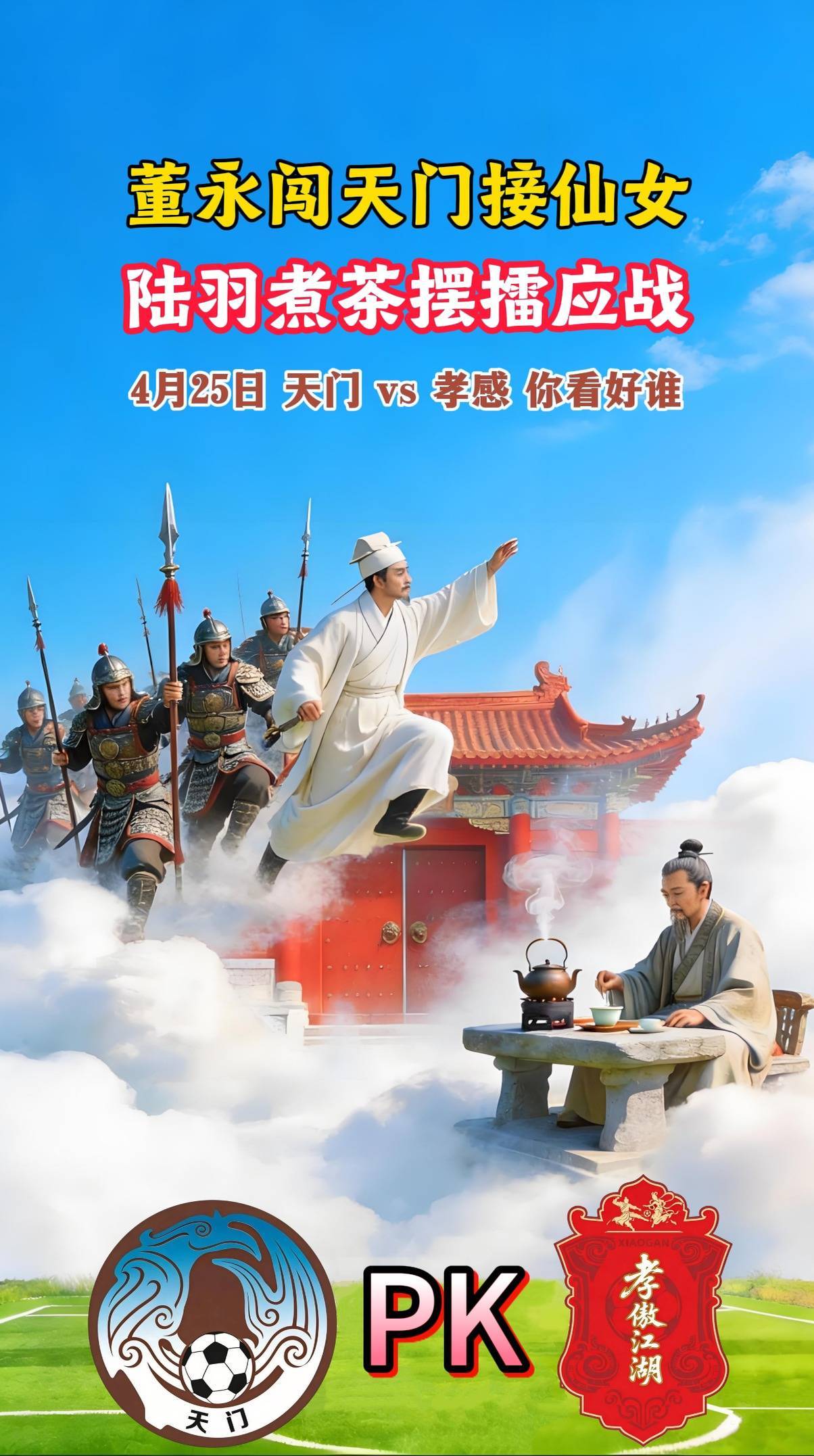当孝感的“孝文化”遇上天门的“茶圣文化”,当“董永”的执着遇上陆羽的从容,双城的文脉在绿茵场上交融共生。