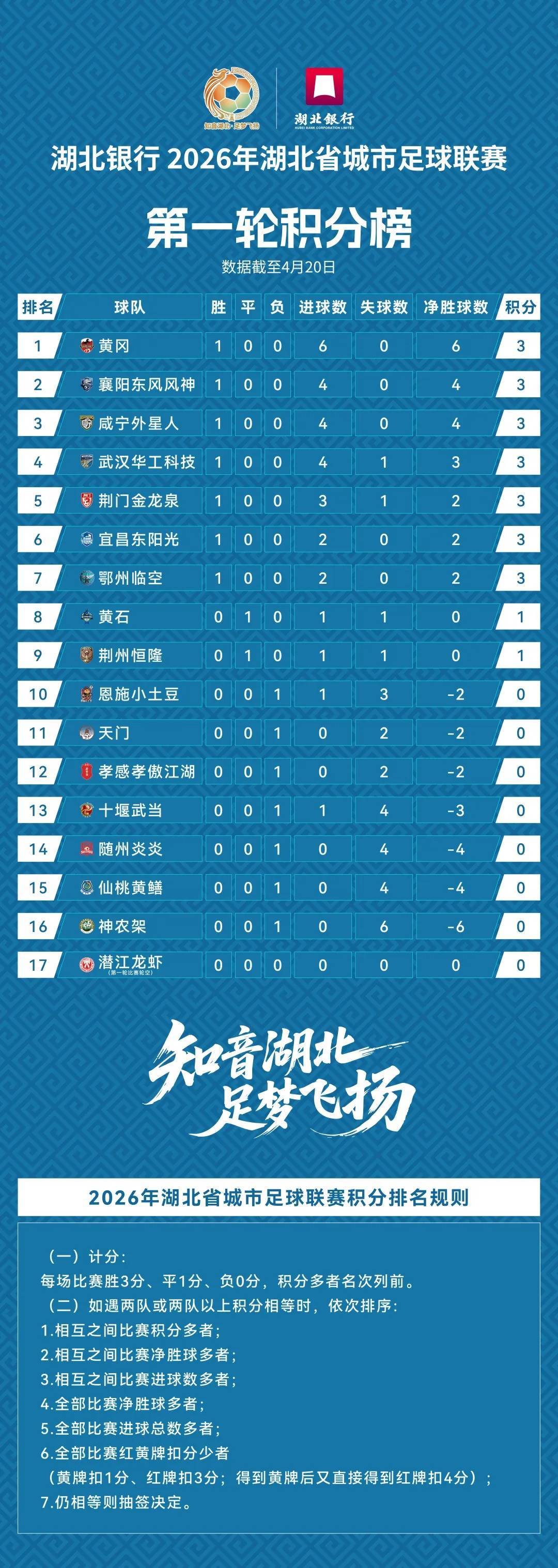 “楚超”第一轮积分榜配资平台股票,天门队与孝感孝傲江湖队位次相邻。(来源:湖北省城市足球联赛)